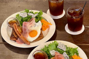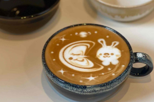 古民家を活かして、天井は吹き抜けに。開放的な空間で、店主拘りの珈琲や、かわいいラテアートが楽しめます。